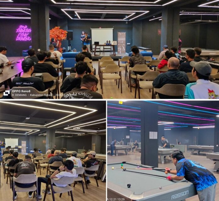 Media Informasi Nusantara News Cikarang – Vice Billiard Community (VBC) Cikarang Selatan menggelar Aksi Solidaritas Peduli Sumatera-Aceh melalui turnamen billiard amal yang berlangsung di Vice Neo Billiard, Jalan Raya Cikarang–Cibarusah Blok F, Pasirsari, Cikarang Selatan, Kabupaten Bekasi, Jawa Barat, Minggu (21/12/2025).